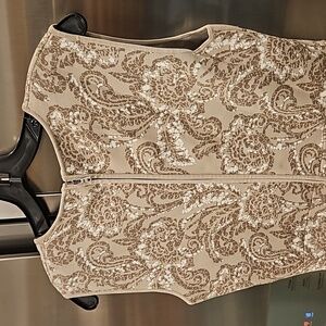 💕BCBGMAXAZRIA💕 Alix Jacquard Dress Light Stone Floral Tapestry Large NWT