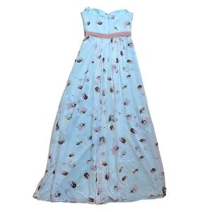 BCBGMAXAZRIA Amber Pearl Blue Floral Strapless Silk Maxi Dress Women’s US 4