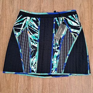 BCBGMAXAZRIA Andrick Black/Combo Tropical Flora Waffle Fabric Unlined Skirt Size 6 NWT. Medium weight fabric with classic attention to detail. 100% Cotton. Back zipper with hook and eye closure. Dimensions; Waist - 28" , Hip - 36", Skirt Length - 15 1/2". This BCBGMAXAZRIA is great for work paired with or silk or linen shirt.