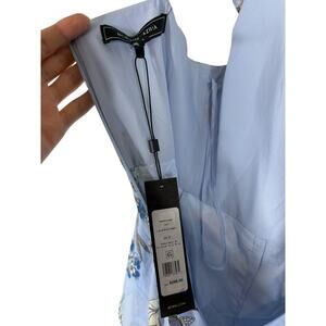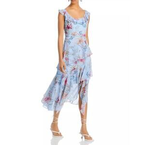 BCBGMAXAZRIA Asymmetric Midi Dress Tiered Ruffle Floral Party Garden Hoco Blue 2