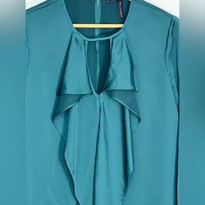 BCBGMAXAZRIA Asymmetrical Hem Ruffle Emerald Green Dress Medium