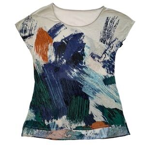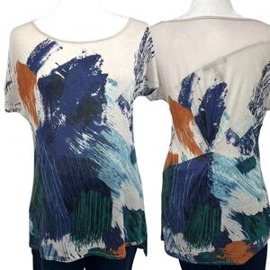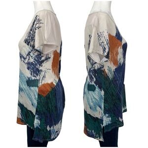 BCBGMAXAZRIA Axel Tee Mesh Panel Water Color Top Beige Blue Orange Medium M