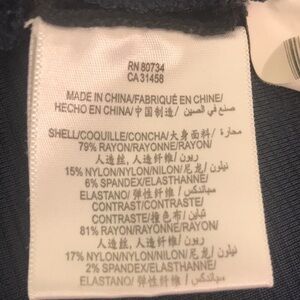 Contrast: 81% Rayon 17% Nylon 2% spandex
