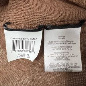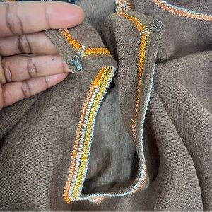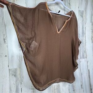 This is a drape kaftan blouse that can be worn anyways such as a beach cover up. It has a beaded embellishment neckline and is one size. Color toffee brown