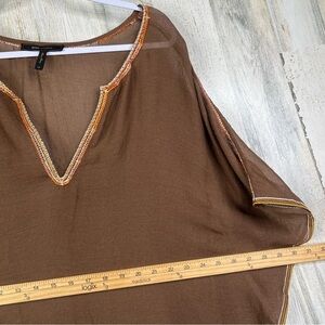 BCBGMAXAZRIA Beach Cover Up Top with beaded neckline Womens Sheer Shirt OS