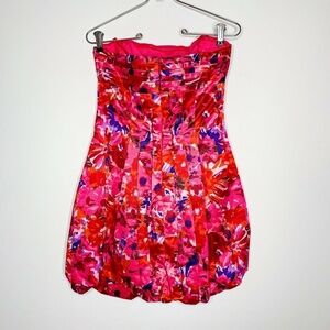 Begonia Print Dress. Removable Straps/Strapless. Bubble Hem. Flower Centerpiece. Boned Bodice. NWT.
