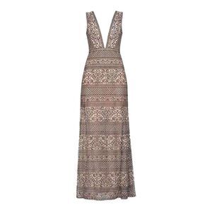 BCBGMAXAZRIA Beige Black Aurora Embroidered Tulle Sleeveless Trumpet Gown 4