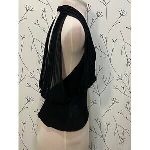 BCBGMAXAZRIA Black 100% Silk Halter Top Sheer SIZE 8 Flowy Deep V Sexy Open Back