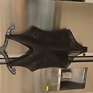 💕BCBGMAXAZRIA💕 Black Faux-Suede V-Neck Bodysuit Medium M NWT
