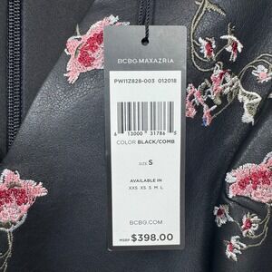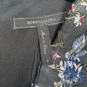Keywords: BCBGMAXAZRIA, black dress, floral dress, embroidered dress, faux leather dress, sleeveless dress, cocktail dress, party dress, womens dress, size S, v neck dress, side slit dress, new with tags, designer dress