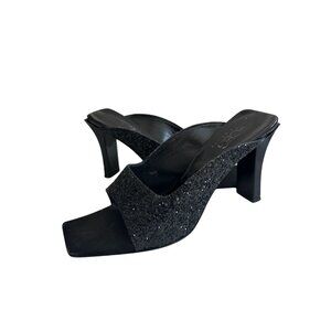 BCBGMAXAZRIA Black Glitter Y2K Square Toe Heels Size 9