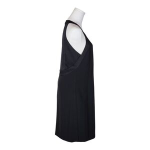 Command attention in this sleek and sophisticated BCBGMAXAZRIA little black dress, crafted in a structured blend of polyester, rayon, and spandex for a flattering, tailored fit. This size 06 sheath-style dress features a unique open back with draped overlay detail and a halter neckline with contrast satin trim that adds a subtle sheen. Fully lined for comfort, it includes a concealed back zip closure and a slight A-line shape that enhances movement. Perfect for cocktail parties, formal events, or evening wear, this timeless black dress is a versatile addition to any wardrobe. Machine washable, and effortlessly chic.