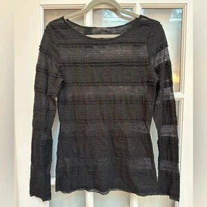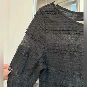 BCBGMAXAZRIA | Black Lace Semi Sheer Long Sleeve Blouse Size M Medium