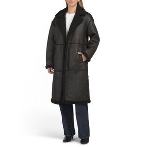 BCBGMAXAZRIA Black Long Faux Shearling Coat