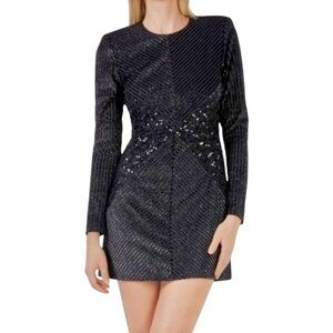 BCBGMAXAZRIA Black Long Sleeve Ciana Sparkle Evening Mini Dress Size 8 NWT