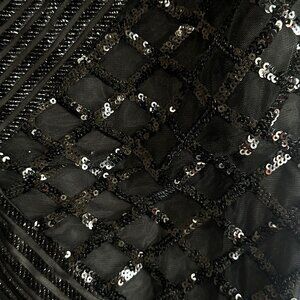 Ciana Sparkle Mini Dress In Black Beauty, Part of BCBGMAXAZRIA's premium Signature Collection, is a dazzling long sleeve design that’s all about glamour and sophistication. This modern mini is crafted with a unique geo pattern. Topped with a crew neck and long sleeves, its sparkling craftsmanship is done with diagonal stripes and striking sequin detailing at the waist. Complete with a back zip. This sparkling showstopper is perfect for cocktail parties, holiday celebrations, and unforgettable nights out.