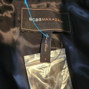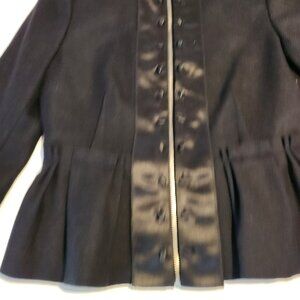 BCBGMAXAZRIA Black Peplum Jacket Satin Button Wool Military Style Small NEW