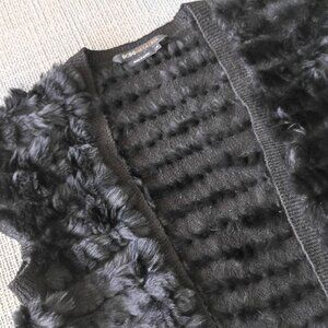 Genuine rabbit fur bolero-style vest by BCBGMAXAZRIA. Soft, plush texture with knit wool/acrylic blend backing.