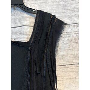BCBGMAXAZRIA Black Sleeveless Top With Fringe Detail M