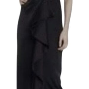 BCBG black strapless gown with rubber strip around interior bust line, lined, wire boning, back zipper with hook and eye, lightweight.