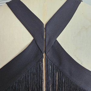 BCBGMAXAZRIA Black Top with Back Fringe Trim in size XXS