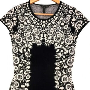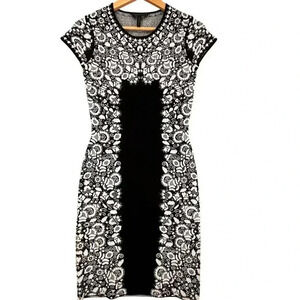 BCBGMAXAZRIA Black White Embroidered Bodycon Bandage Mini Dress Small