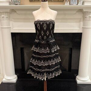 🖤 BCBGMAXAZRIA Black & White Embroidered Strapless Tiered Dress – Size 8