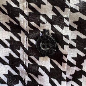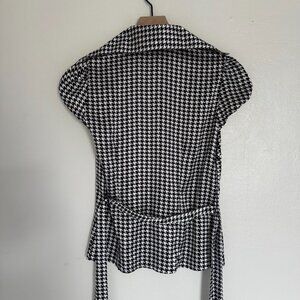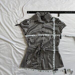 BCBGMAXAZRIA Black & White Houndstooth Cap Sleeve Belted Silhouette Blouse XS