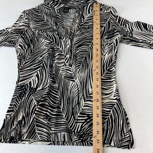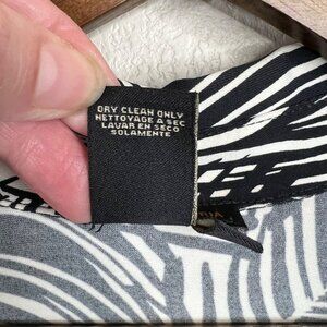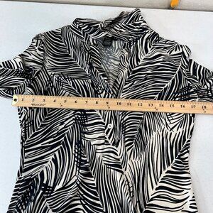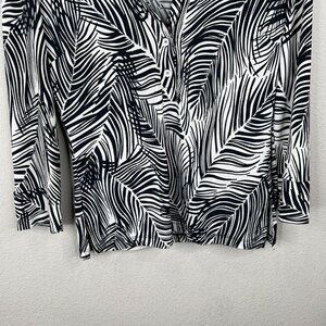 BCBGMAXAZRIA Black White Palm Leaf 3/4 Sleeve Wrap Blouse M