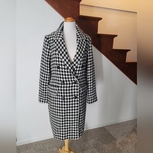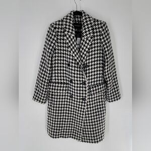 BCBGMAXAZRIA Black White Wool Blend Houndstooth Double Breasted Coat M New