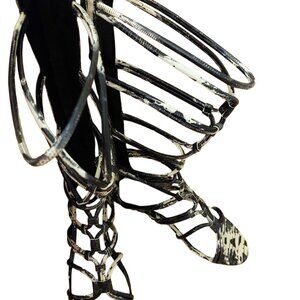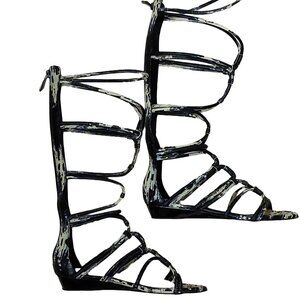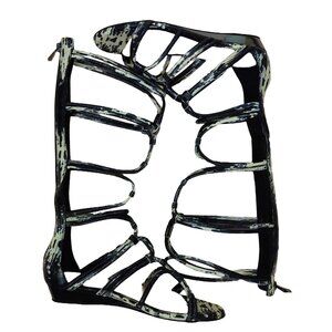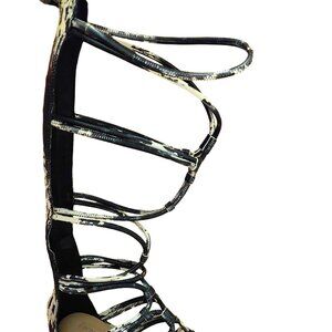 BCBGMAXAZRIA Black and White Leather Gladiator Sandals Flats Shoes Retail $484
