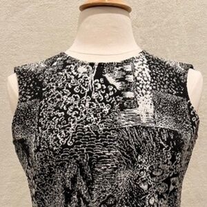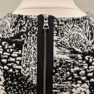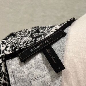 Stylish black and white patterned top by BCBGMAXAZRIA. Perfect for any occasion. Full zipper back. Excellent condition, no known flaws. Inside side care tag removed.