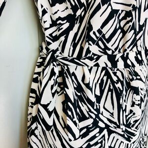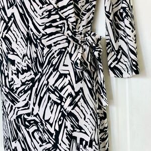 BCBGMAXAZRIA Black and White Print Sheath Wrap Dress