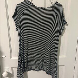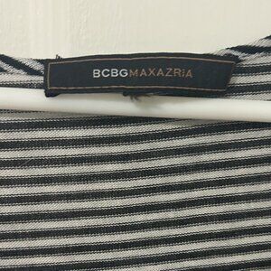 BCBGMAXAZRIA Black and White Striped Top Asymmetrical hem