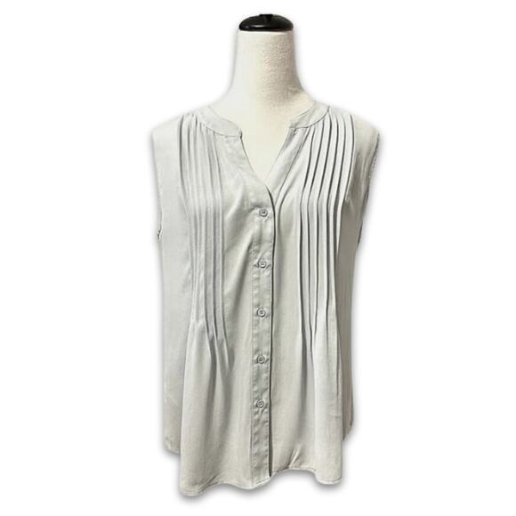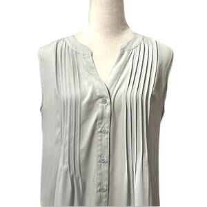 BCBGMAXAZRIA Blouse Sleeveless Button Up Front Tuck Pleated Solid Gray Women's S