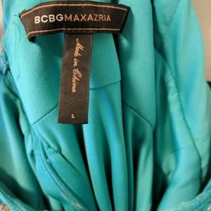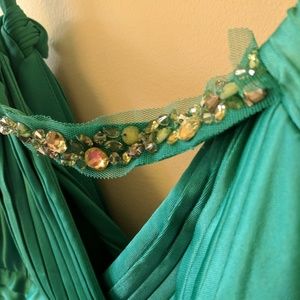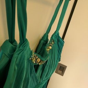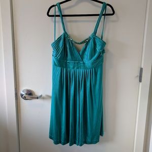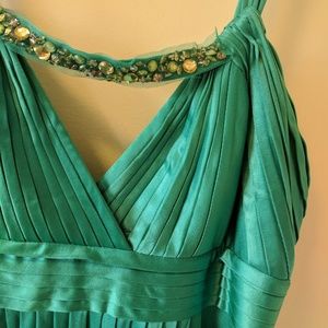 Teal BCBGMaxAzria cocktail, homecoming, prom, or bridesmaid dress. Worn only a handful of times; in great condition. Bead detailing on front and intricate open back. A very high-quality dress that I love and wish I had more occasion to wear!