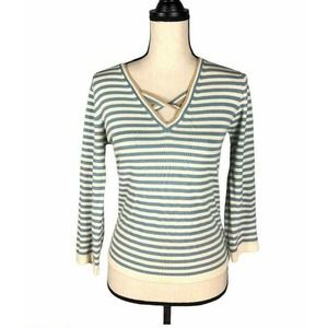 BCBGMAXAZRIA Blue/White Striped Knit Top Size: M