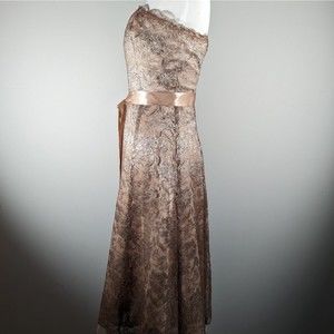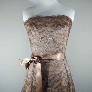 BCBGMAXAZRIA Bronze Metallic Cocktail Lace Strapless Dress Women's Size 2