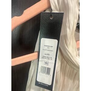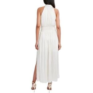BCBGMAXAZRIA Broomstick Satin Pleated Smocked Halter Maxi Dress XS NEW
