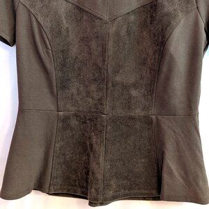 BCBGMAXAZRIA | Brown Denna Faux Suede Corset Style Peplum Top Brown | Size Small