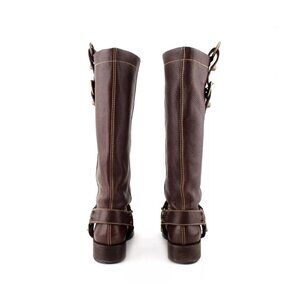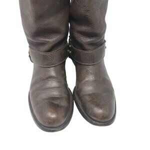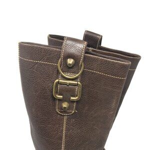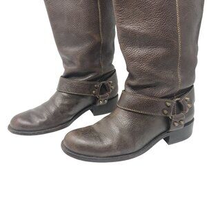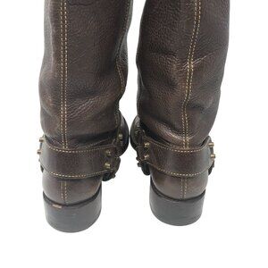 BCBGMAXAZRIA Brown Leather Riding Boots Size 8 Studded Strap Buckle Detail