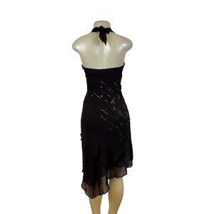 BCBGMAXAZRIA Brown Mahogany Halter Embellished Cocktail Dress Evening Wear Sz 4