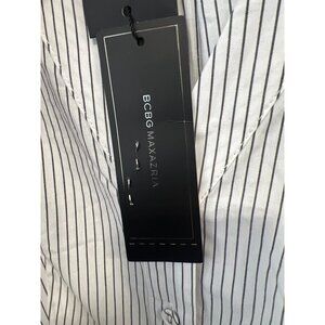 BCBGMAXAZRIA Button Front Striped Midi Dress Womens Small White Black Formal NEW