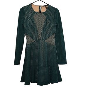 BCBGMAXAZRIA CROCHET LACE OVERLAY FIT & FLARE LONG SLEEVE MINI DAINA DRESS XS