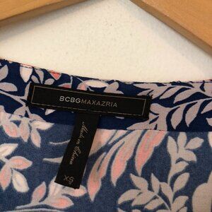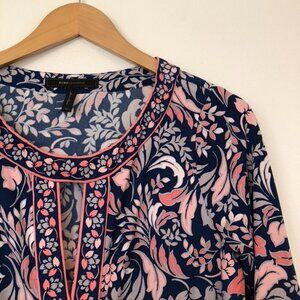 BCBGMAXAZRIA Calico Dress Navy Blue Pink Floral 3/4 Sleeve Cutout Mini Shift XS