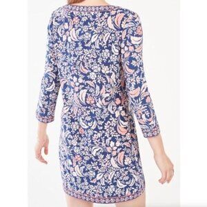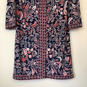 navy blue / pink / purple ish / white or off white floral shift dress
