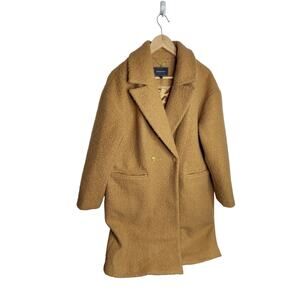 BCBGMAXAZRIA Camel Midlength Teddy Coat Fall Quiet Luxury L