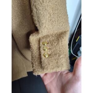 teddy mid length lined button closure gold buttons quiet luxury glam casual fall