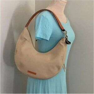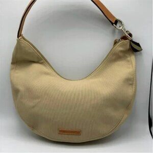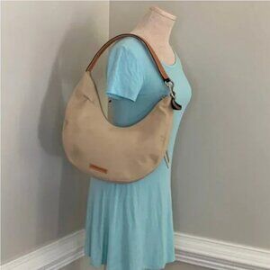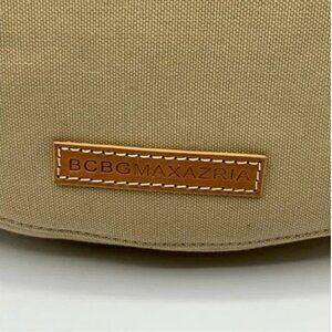 BCBGMAXAZRIA Canvas Bohemian Hobo Tan Bag with Leather Strap