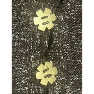 NOTE: The 2nd photo close up of the fabric does the best job at showing the colors interweaved in the sweater best. Brown Sweater with Pinks, Greens and Burgundy stitched into fabric. Adorable Wood buttons. No tears, holes, stains or odors. The sweater measures 17" armpit to armpit, 24" long and 24.5" sleeves. It is more of a S/M then a M/L. Thank you for looking, I always ship FAST!